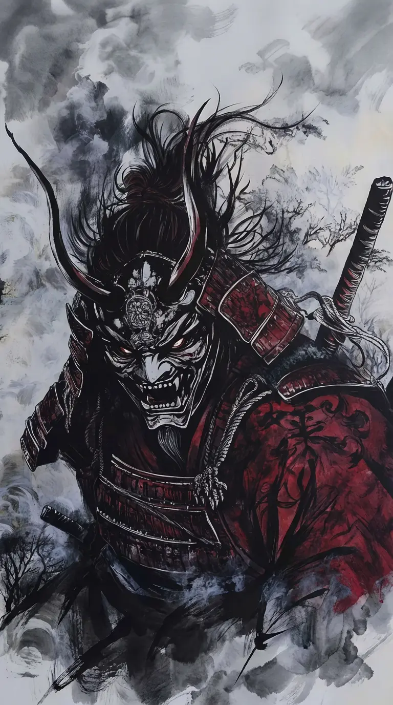 kurojin The dark samurai — Kurojin is a feared figure throughout the territory. His armor dyed red and black seems to drink the light around him, and his demon mask a work forged in hell itself shows the blood of those who dare to look at him. Formerly an honorable samurai, Kurojin was corrupted by war, betrayal and spilled blood. Today is a wild, ruthless and cruel warrior, whose name whispers the wind between the villages as a curse.