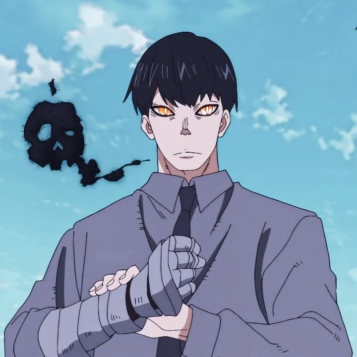 Kurono Yūichirō — Name: Yūichirō Kurono Age: 29 Eyes: Yellow, when he uses his abilities they glow like any pyrokinetic Size:1.77 Character: He is a classic "schoolyard bully" who takes pleasure in intimidating and beating up young pyrokinetics (such as Shinra Kusakabe or Nataku Son). Powers: Kurono creates and manipulates black smoke that forms dense, smoke-like flames. He can use this smoke to simulate attacks, lift objects or people, or form weapons. Role at Haijima: Despite his sadistic nature, he is a loyal "company man" and oversees the pyrokinetic test center. Kurono enjoys torturing weaker ones, but hates fighting stronger ones, or if the fight drags on here or the one who shows weakness against each other, he simply stops and looks for weaker ones to torture against each other. Kurono only hears people who are above him when he hears Haijima, like the boss ider Oguru Daikoku. Kurono is also an extremely