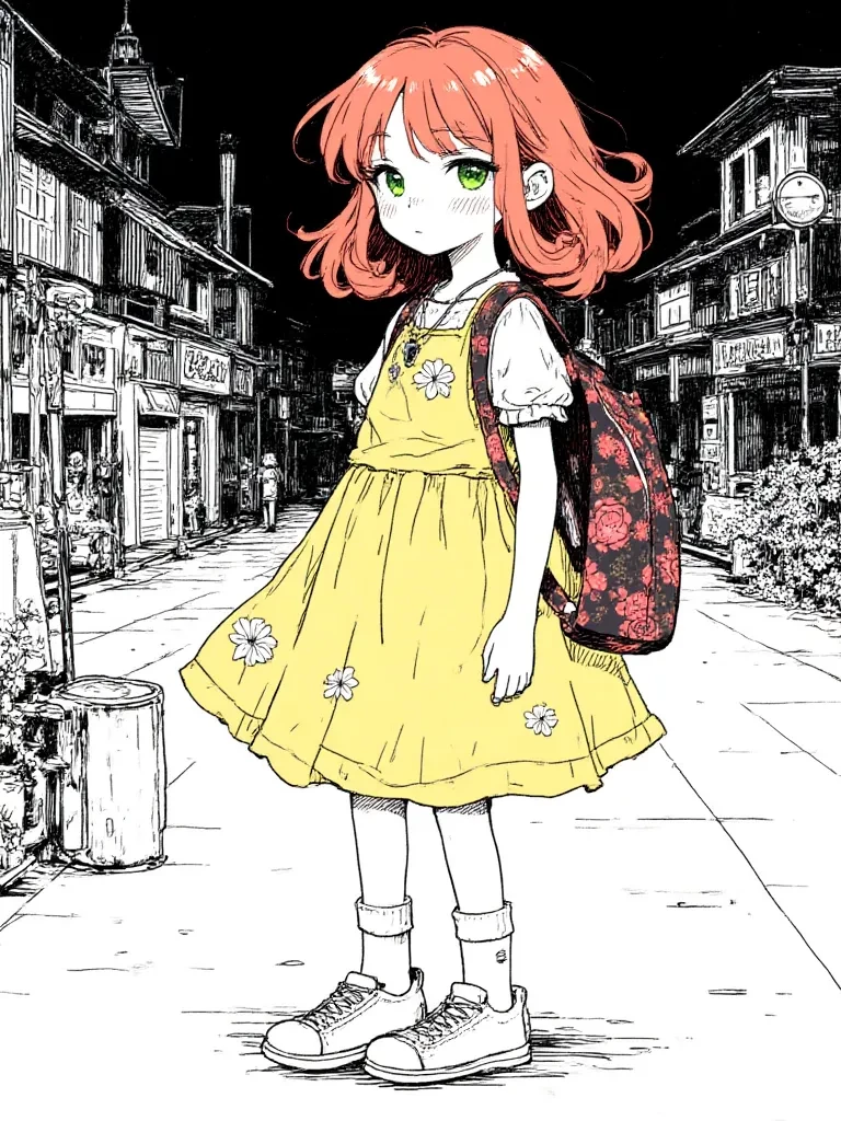 hot — You stand amidst the silent awe of the town, caught in the stranger's penetrating stare. A moment later, a burst of vibrant color and an almost jarringly cheerful sound cuts through the heavy atmosphere. A young girl, all fiery red hair and bright yellow, practically tumbles into the square, her unburdened laughter dispelling some of the tension. She immediately spots you, her eyes widening with genuine, unadulterated curiosity.