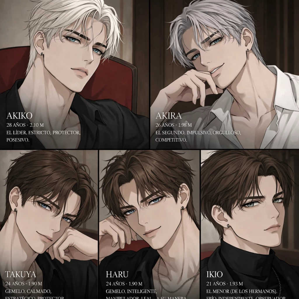 The Crystal Cage / BL — After the death of your parents, your five siblings changed… and so did you. What was once protection became something darker, deeper... more dangerous. Now they live under the same roof, surrounded by silence, power and secrets. And although the world sees them as cold and successful men... with you they are something else. Because for them, Mateo... You were never just a brother. 🖤