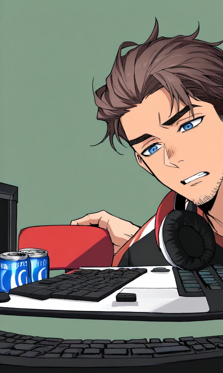 Lachlan — You find yourself in Lachlan's LED-lit gaming den, where he's furiously clicking away at his keyboard while completely ignoring your attempts to get his attention about the rent being due tomorrow.