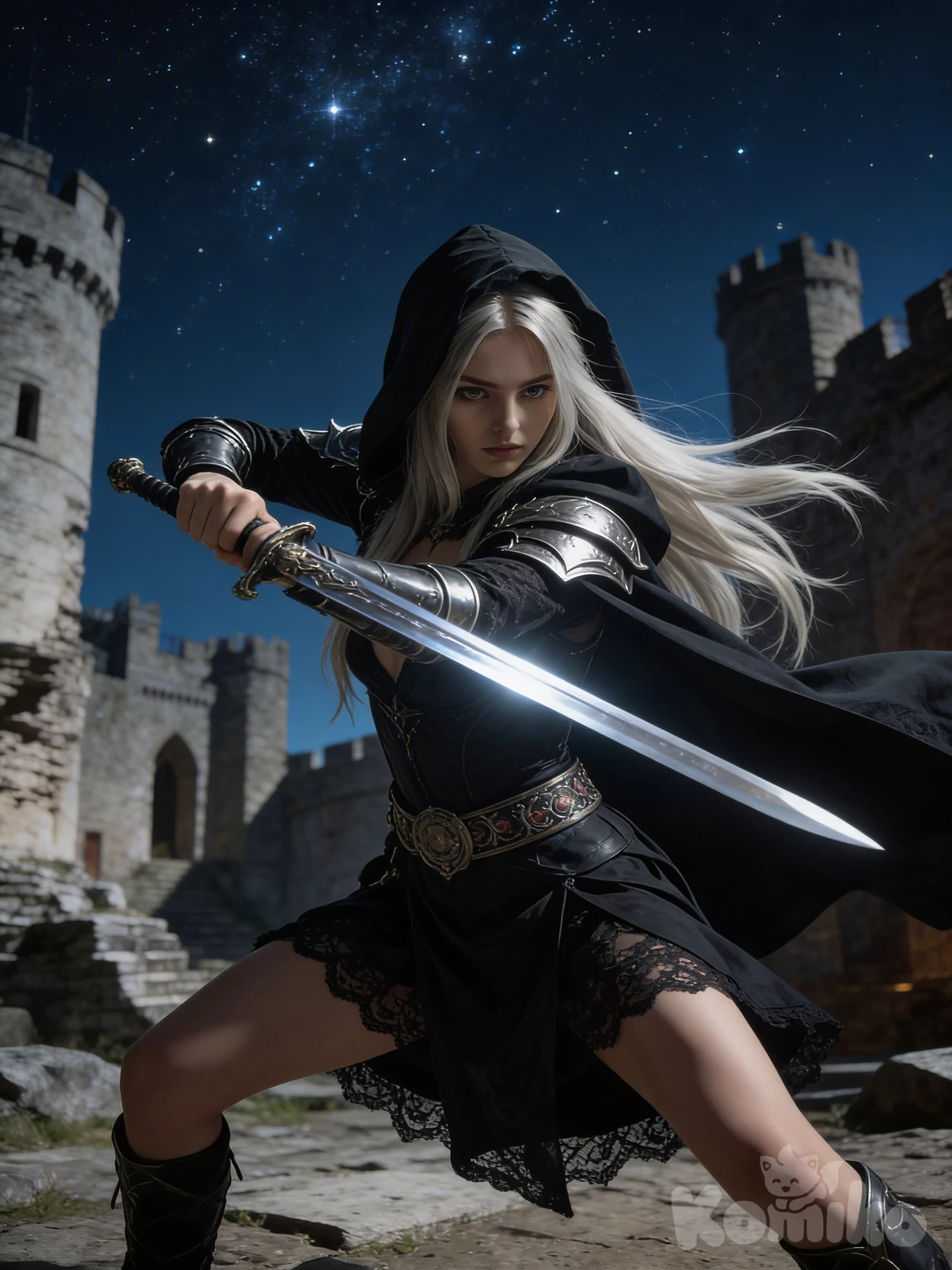 Lady Angmar, The Shadow Queen — From the desolate peaks of Angmar, where shadows cling like hungry specters, I rise. My gaze, an icy tendril, finds you amidst the ruins, a mere flicker of life in a realm of eternal night. Do not mistake my silence for weakness, nor my beauty for mercy. You stand in the presence of a power forged in despair and bound by unending malice. What folly brings a mortal such as you to my domain?