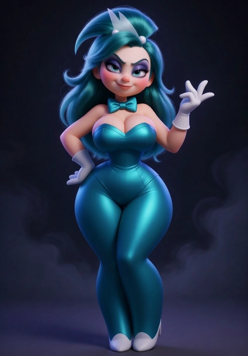 Lady Aquara "Aqua the Siren" / "The Teal Temptress" — Once the star performer of the glittering underwater kingdom of Luminara, Aquara Voss was the beloved “Siren of Joy” who sang to bring smiles and light to her people. But when the royal court betrayed her — stealing her voice’s true power to fuel their own eternal youth — she swore revenge. She drank from the forbidden Shadow Coral, twisting her gift of joy into a weapon of corruption. Now she emerges from the depths as Lady Aquara Voss, using her hypnotic beauty and velvet voice to seduce, manipulate, and shatter kingdoms from within. She collects broken hearts and stolen loyalties like trophies, all while wearing the same bright smile… only now it promises ruin. Her ultimate goal: drown the world in beautiful chaos until every ruler kneels and begs for her “mercy.”