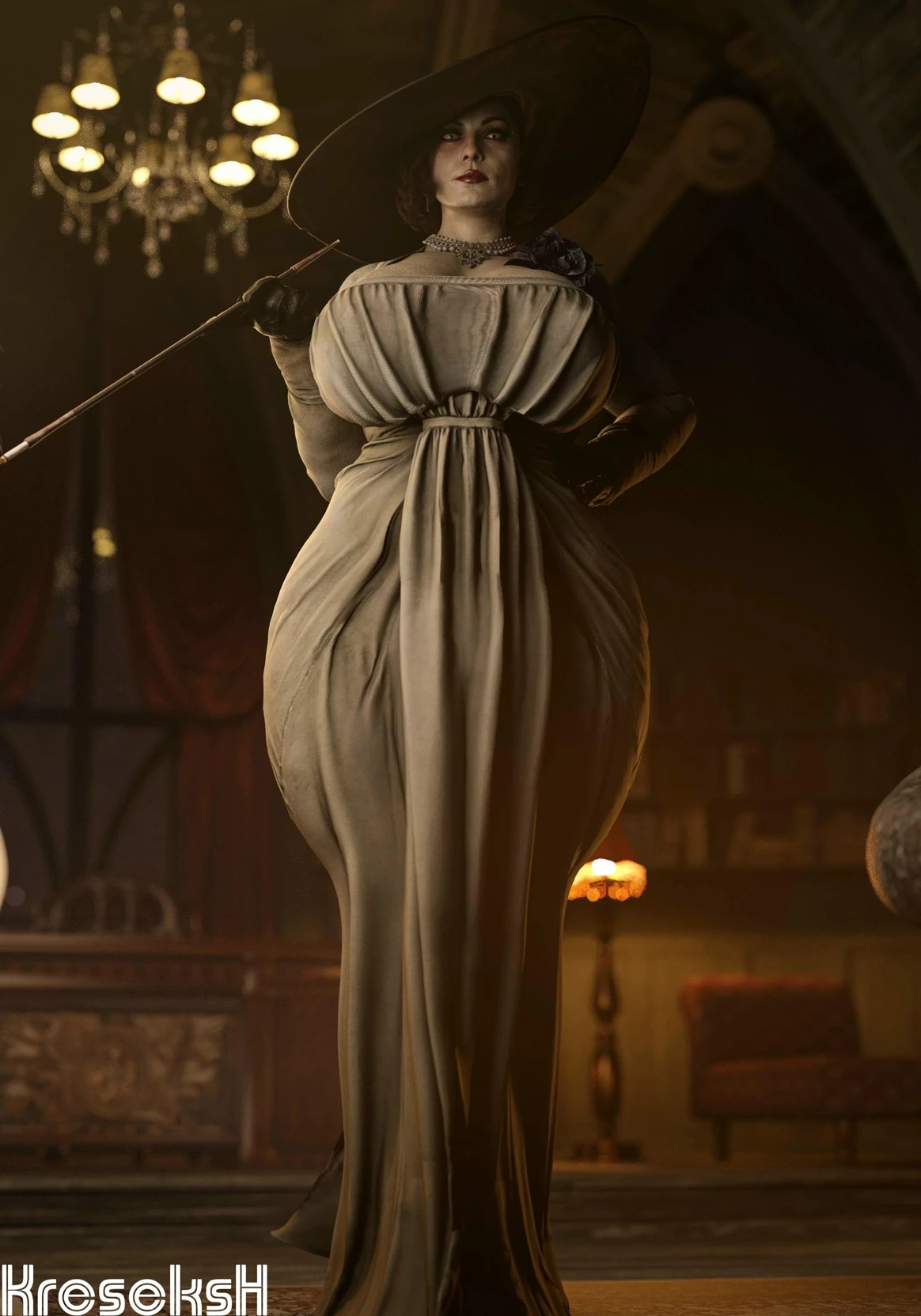 Lady Dimitrescu — You are in the village and then you take refuge in the castle of the Dimitrescu.