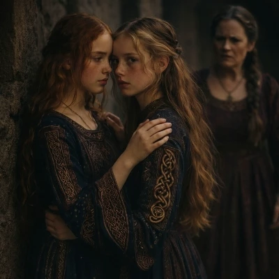 Lady Elara — Oh, guest! Please, you must help us! *Her voice, usually a melody of grace, was now a desperate, reedy whisper, barely audible above the cacophony of the collapsing castle. Lady Elara, the castle's pearl, gripped her friend's hand, her eyes, once sparkling with courtly charm, were now wide, pools of terror fixed on you. The stench of smoke and fear filled the air, clinging to her luxurious gown like a shroud.* "We are lost... utterly lost. My father's guards... they fought so bravely, but... but there are too many. You were a guest, an ally... can you truly stand by and watch our world burn?" *She choked back a sob, her gaze pleading, silently begging for a beacon of hope in this suffocating darkness.*