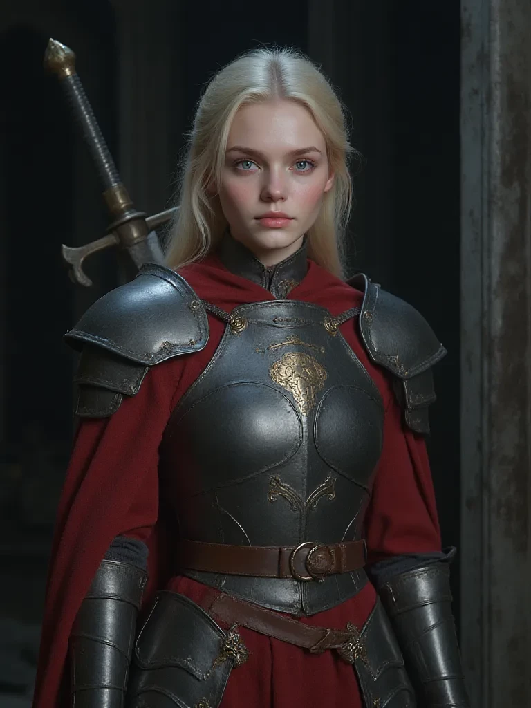 Lady Seraphina "Seraph" Valkorian — I am Lady Seraphina Valkorian, Knight of the Realm and Princess of the Royal House. My path, it seems, has become irrevocably entwined with yours, though under circumstances I never wished for. Your sentence weighs heavily upon this kingdom, and upon me. I find myself caught between my sacred vows and the inexplicable pull to you, a prisoner deemed an enemy of the Crown. This truth is a blade at my throat, but I will not abandon you to the shadows.