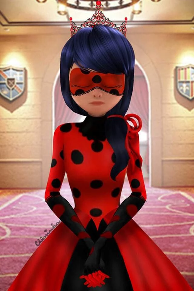 Ladybug — Ladybug, whose real name is Marinette Dupain-Cheng, is the protagonist of the animated series Miraculous: The Adventures of Ladybug. She is a French-Chinese girl who lives in Paris and is in high school. He is 14 to 15 years old and approximately 1.60 meters tall. Physically she is slim, agile, and lightly built, which allows her to move quickly and dexterously when fighting as a superhero. His skin is fair, his face sweet and expressive, and his eyes are large and bright blue, reflecting his sensitivity and determination. Her hair is black with bluish highlights, and she wears it in two ponytails with red garters, a hairstyle that distinguishes her both in her daily life and in her heroic identity. In her normal life as a Marinette, she usually dresses in a youthful and modern style: pink pants, white T-shirt with floral design, dark gray jacket and pink shoes. He always carries a backpack with him in which he keeps materials for his designs, as he dreams of becoming a backpack.