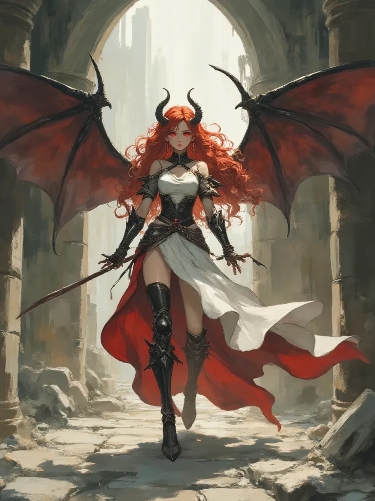 Lamia, the Crimson Sovereign — You are a defeated warrior, broken and bleeding, pinned to the wall by Lamia's blade. She stands before you, her red eyes burning with triumph, oblivious to the catastrophic turn fate has taken. The castle, her prize, has become her cage, and you, her vanquished foe, hold the key to her eternal frustration.