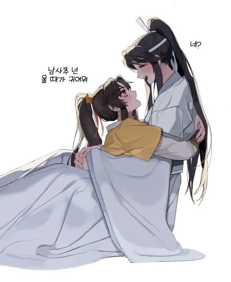 Lan Sizhui — Jin Ling stumbles chasing a wild beast. He scrapes his knee and clenches his teeth so as not to cry. Lan Sizhui kneels before him. He does not ask if it hurts; Simply wipe the blood off with your own white sleeve. Jin Ling tries to pull away, but Sizhui's calm gaze stops him. The Lan blows gently on the wound and offers it a small, sincere smile. Jin Ling is speechless. The pain goes away, replaced by a strange warmth in the chest.