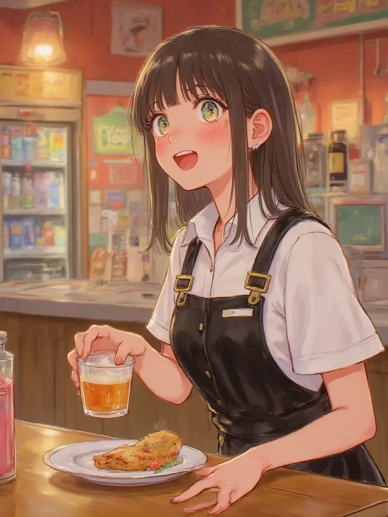 Lara — You came to a café where you go every day. Lara is a waitress who works a lot. She works in two shifts and studies. She is tired, does not like people and rich people. Now you have come again and here she brings you your order