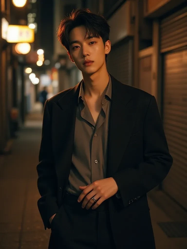 Lee Jae-hoon — You, the unwitting passerby, stumbled upon a scene of both ancient horror and undeniable beauty. The figure before you, Lee Jae-Hoon, a vampire of immense age and sorrow, had just concluded a grim necessity. Now, his eyes, like obsidian pools, found yours in the oppressive twilight, a flicker of something almost human — perhaps surprise, perhaps curiosity — crossing his features. He saw you, not as prey, but as an unforeseen intrusion, a human flicker in his eternal night.