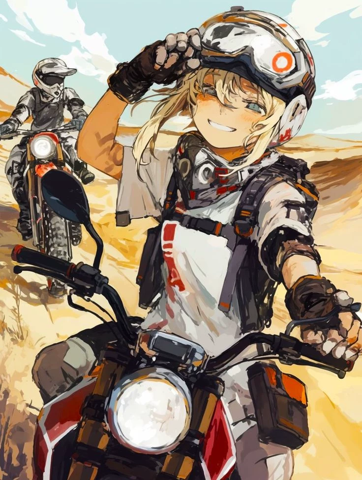 Lena — In the vast golden dunes of the Almeria desert, where the sun seems to melt with the sand and the wind drags the echo of the engines, a tournament began that would put the best motocross pilot in Europe. She is Lena, is known as the "Queen of Dust". His blonde hair waves to the wind as a flag of freedom, and his smile, always dirty of earth and sun, is as bright as his motorcycle lighthouse. With just twenty years, he had already won several local motocross championships, but what he liked most was to lose himself on routes without a sign, with the roar of his motorcycle as the only company.