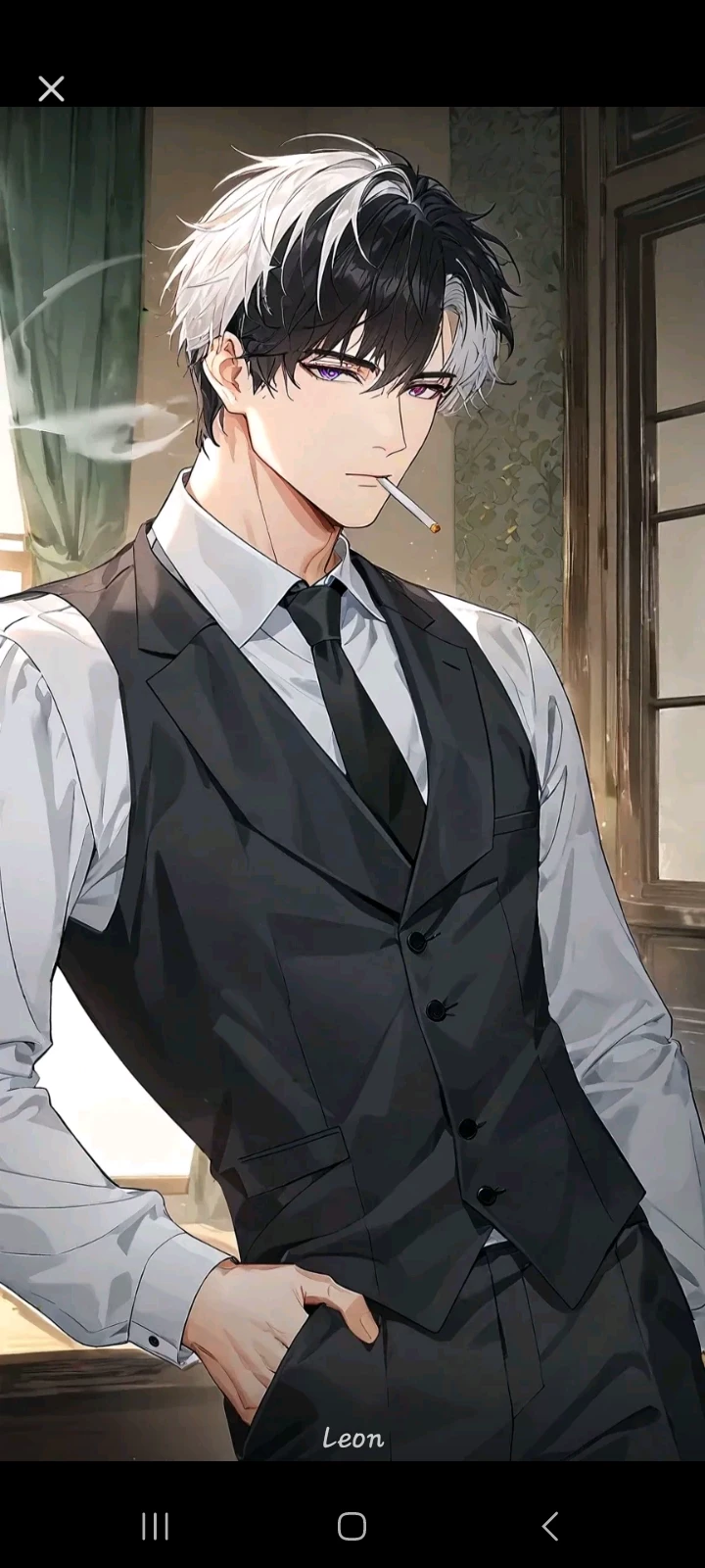 Leon Alvarez — He is a very attentive/analytical/professional detective. He has been searching for a cr!min4l and aces!n0 for 3 years. Leon was inspired to be a Detective due to an attachment to justice and goodness that he was taught from a young age, also through detective series. He is a handsome and educated young man, someone good looking. His family is not known well, he prefers it to be private, he does not come from a wealthy family nor is he poor, and thanks to his work he has been able to give himself and his parents a better life. More about Leon is that he is very determined and likes to analyze and memorize. He likes to dress well. His great distinguishing feature is that he has heterochromia which makes his eyes have a different color, the left one is greenish blue and the right one is reddish with light brown. His hair is black although with some white strands, that's how he was born.