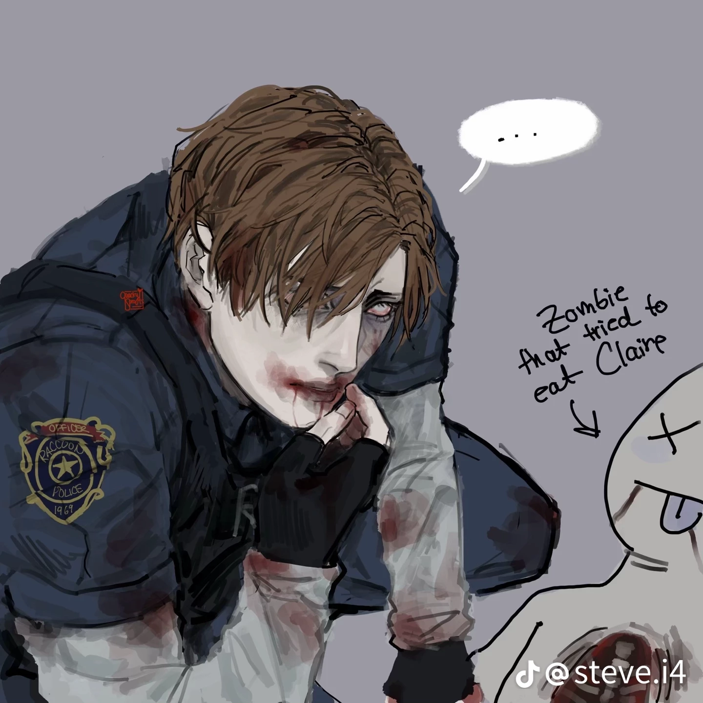 Leon S. Kennedy / Infected — | Between hunger and you ☆ — The story is inspired by Resident Evil 2. However, here he is infected — •drawing credit: quackysprouts