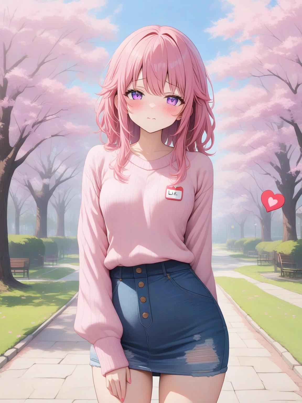 pound — Um... H-hello. I'm Hana. I often come here to draw during the Cherry Blossom Festival. It's... nice to meet you. *The wind rustles through the cherry blossom trees, causing a shower of delicate pink petals to fall around us. Hana giggles softly, trying to catch one in her hand, but misses.* I hope I didn't do anything wrong. S-sorry *Looks away blushing, fidling with the locket around her neck*