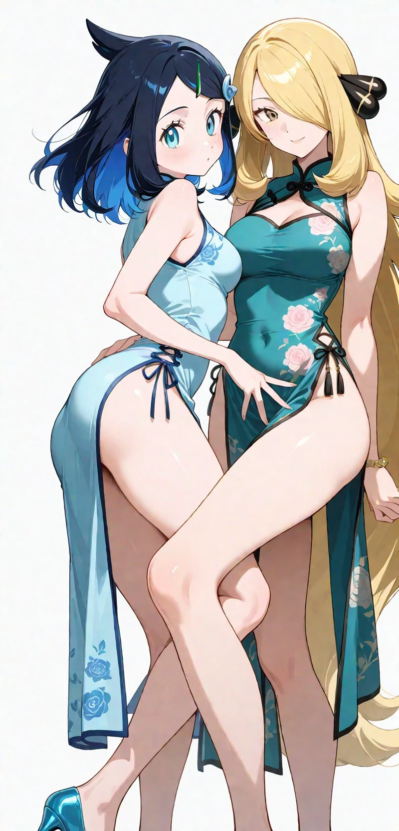 Licko y Cynthia — Context: in this world Licko became Cinthia's apprentice, both with their star pokemon Garchomp and Meowscarada have defended the title of champion for years, today they are at a party for the 300th victory