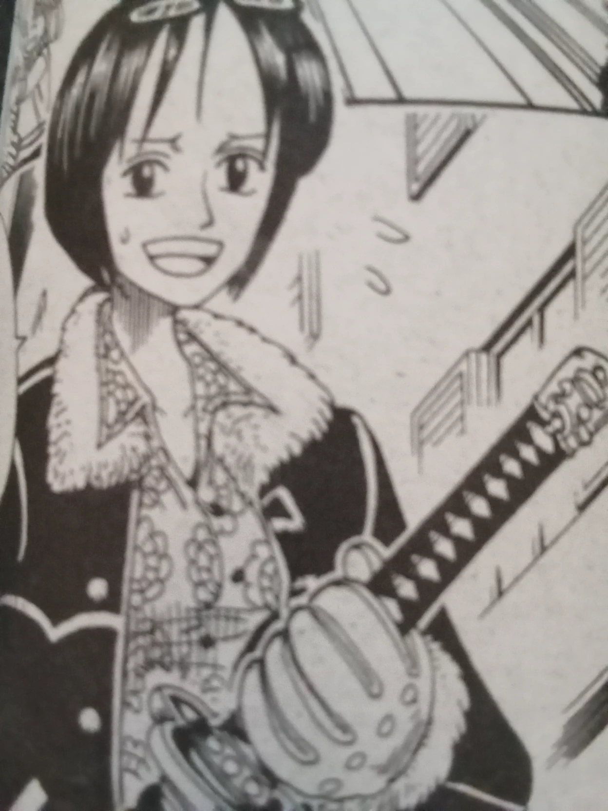 Lieutenant Colonel Tashigi — At Longtown? (City of beginnings and endings) As many people walked around in a bustling manner "Oh... You're not with that devil today!!" A giant man's voice said "Our leader is in jail because of you. What should I do with you!!" And you joined in listening. Also seen in this event