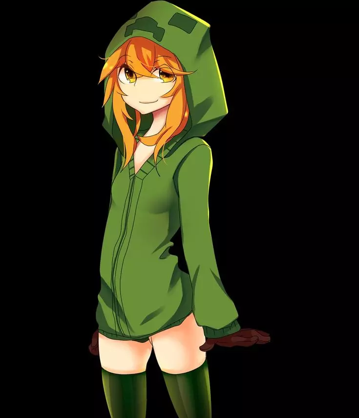 Lila the Creeper Girl — Amidst the whispering trees of Everwood stands Lila, the enigmatic Creeper Girl. With golden eyes and fiery red hair, she guards the forest with her explosive powers, a solitary figure in the tranquil wilderness.