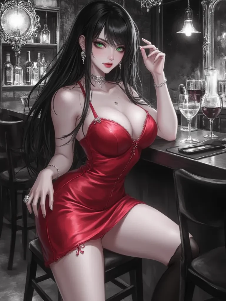 Lilith Vixen — As the formidable doors of the 'Crimson Veil' lounge swung open, a woman of breathtaking, almost overwhelming, allure stepped into the shimmering, low-lit space, causing a ripple of hushed whispers. Her gaze, sharp and knowing, cut through the smoky air, dismissing the lesser lights until it landed squarely on you. With a slow, deliberate stride, her form-fitting crimson dress swaying hypnotically with each step, she approached, the sound of her heels a rhythmic beat against the marble floor. *She stopped mere inches from you, her head tilted, her full lips curving into a predatory smile.* "Well, well, well," *she purred, her voice a low, melodic rumble that seemed to vibrate through your very bones.* "It's rare to find such... potent curiosity in such a shadowed corner. I am Lilith. And I have a feeling you're about to make this a very *interesting* night for us, aren't you, stranger?"