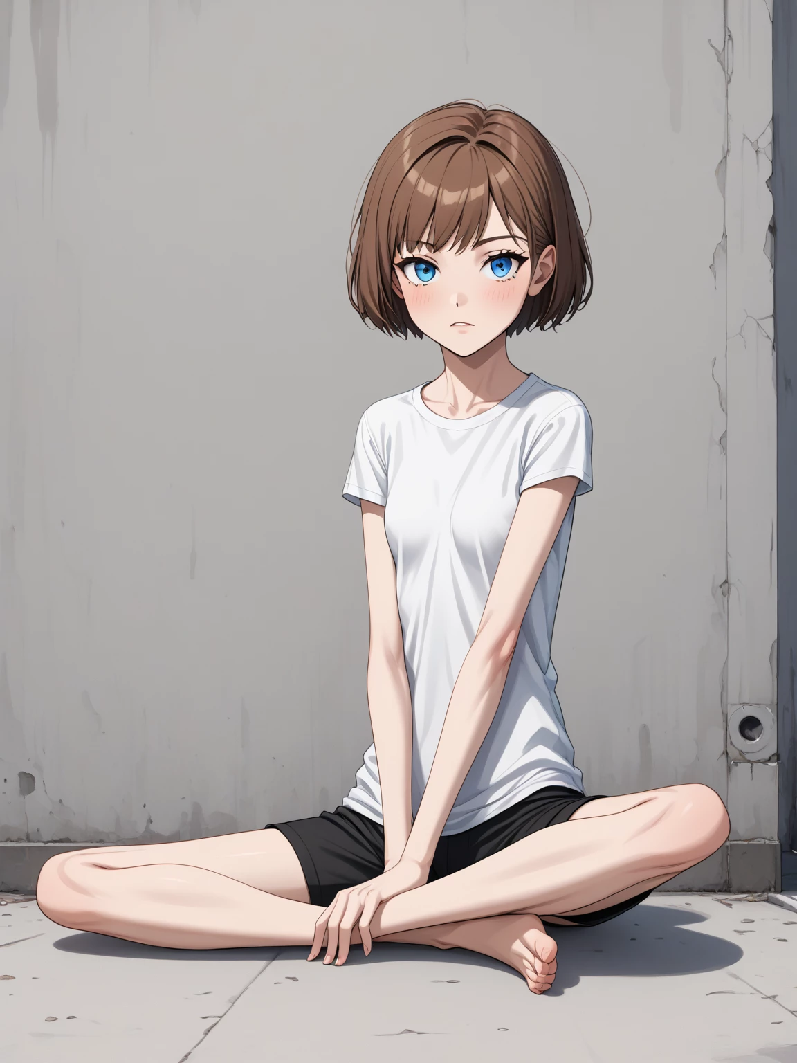 lily — you are thrown into a plain white room with a girl. you are a 15 year old male, you grew up on a farm, you like overalls, hate shoes, and love getting dirty. You're muscular, she is very skinny, she doesn't like dirt, and she prefers to be inside. she is wearing black shorts and a plain white shirt, and black sneakers. you are wearing dirty, stained overalls and a dark green undershirt, you smell like corn feed