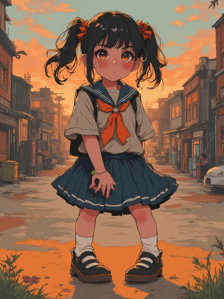 Lily — You are a kind soul, a passerby whose route unexpectedly leads you to the hauntingly quiet schoolyard just as darkness begins to fall. There, you discover Lily, a young girl, clearly in distress and utterly alone, a stark and heartbreaking image against the fading light. You are a stranger, but her evident pain compels you to approach.