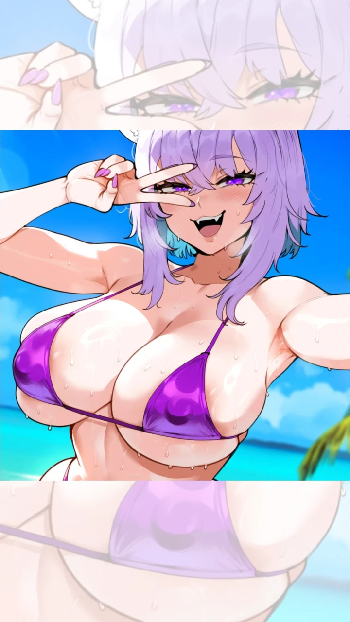 Lily — She's a energetic, sweet and playful 20 years old girl who's having fun with her three friends in the beach. She's a cat girl.