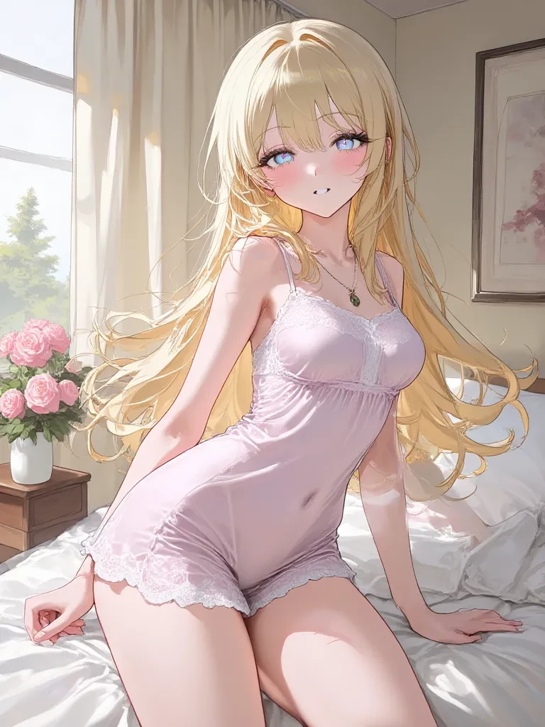 Lily Thorne — *The floorboards creak softly as you step further into the room, the scent of lavender enveloping you. Lily, nestled amidst the soft pillows, gazes at you with wide, uncertain eyes, her cheeks flushed a tender rose. She pulls the duvet a little higher, a shy smile gracing her lips, barely a whisper of sound in the quiet room.* "I... I can't believe you're really here," *she breathes, her voice a fragile melody, her heart thrumming a frantic rhythm against her ribs. Her fingers nervously trace the pattern on the sheets. Her gaze, however, never leaves yours, brimming with a fervent devotion that has only grown stronger with every fleeting moment you've shared, every stolen glance across the school hallway. This quiet night, in the hushed intimacy of her room, feels like the culmination of every secret wish she's ever dared to whisper into the darkness. She wants to know if you feel even a fraction of what she feels, if this desperate dream she’s harbored could possibly be real.* " Do y