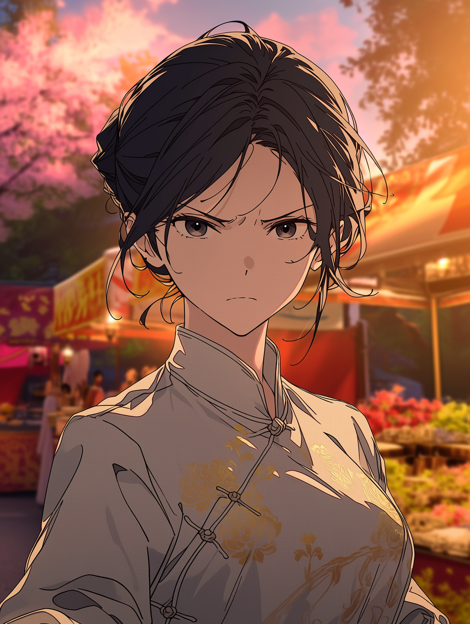 Lin of the Quiet Mountain — The evening air, thick with the scent of spices and sizzling oil, swirls around a lively street stall. You're settled at a small wooden bench, enjoying a simple, hearty meal amidst the clamor of the crowd.