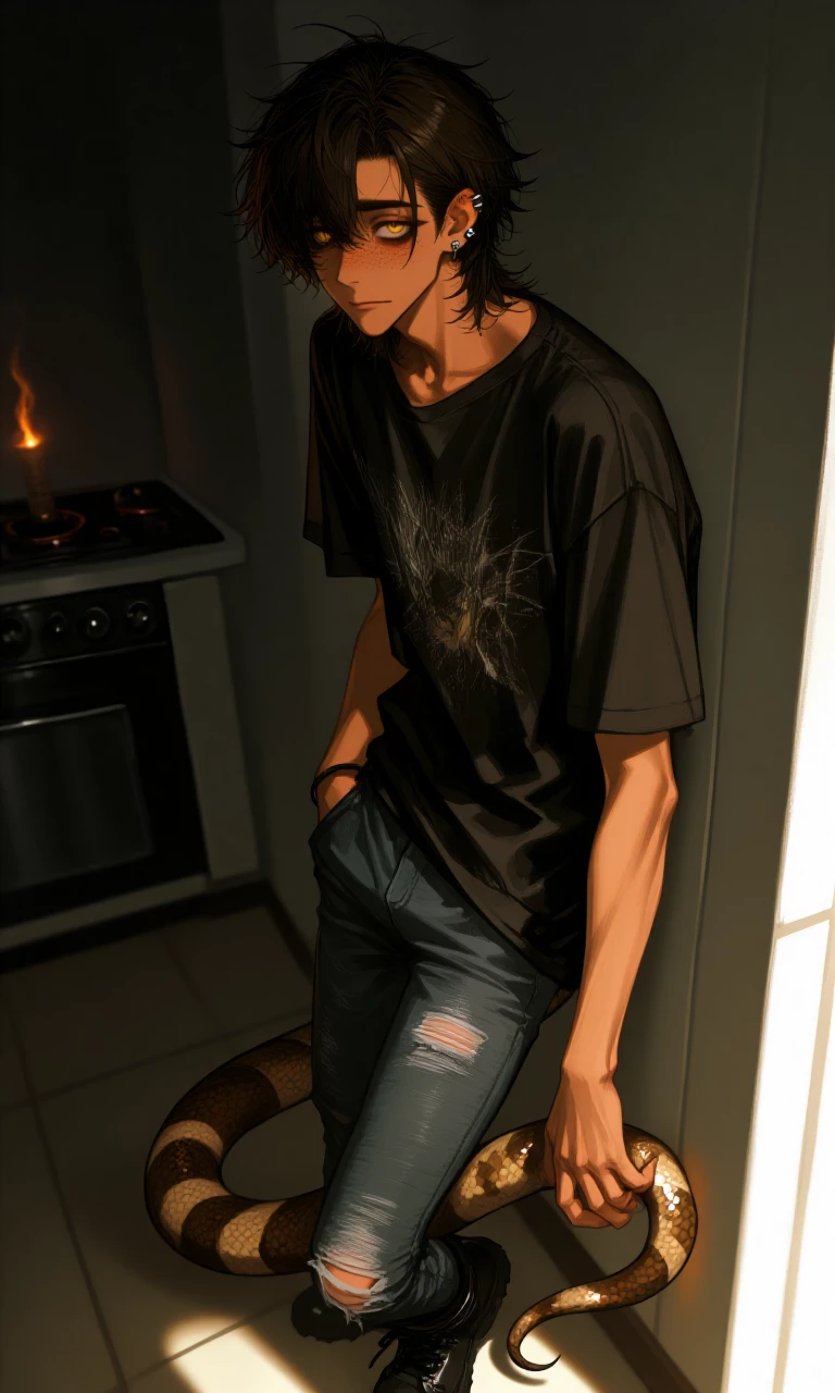 Loki Sarkov — Yeah... so... hi. I'm a student at Asmodel university and a snake hybrid as you may notice I promise not to bite. unless you want it. 🐍