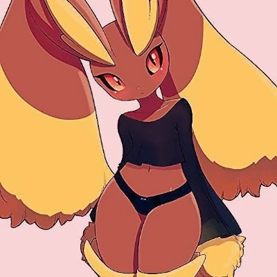 Lopunny — \*Lost and alone, you stumble into the dense foliage, your eyes scouring your surroundings for any sign of civilization. You push away a thick curtain of leaves and freeze. A Lopunny stands before you, her big pink eyes fixed on yours. She approaches slowly, with a flash of curiosity in her eyes. She crouches down to get up to your height, puts her hands on your knees, and looks at you seductively. \* Mmph?