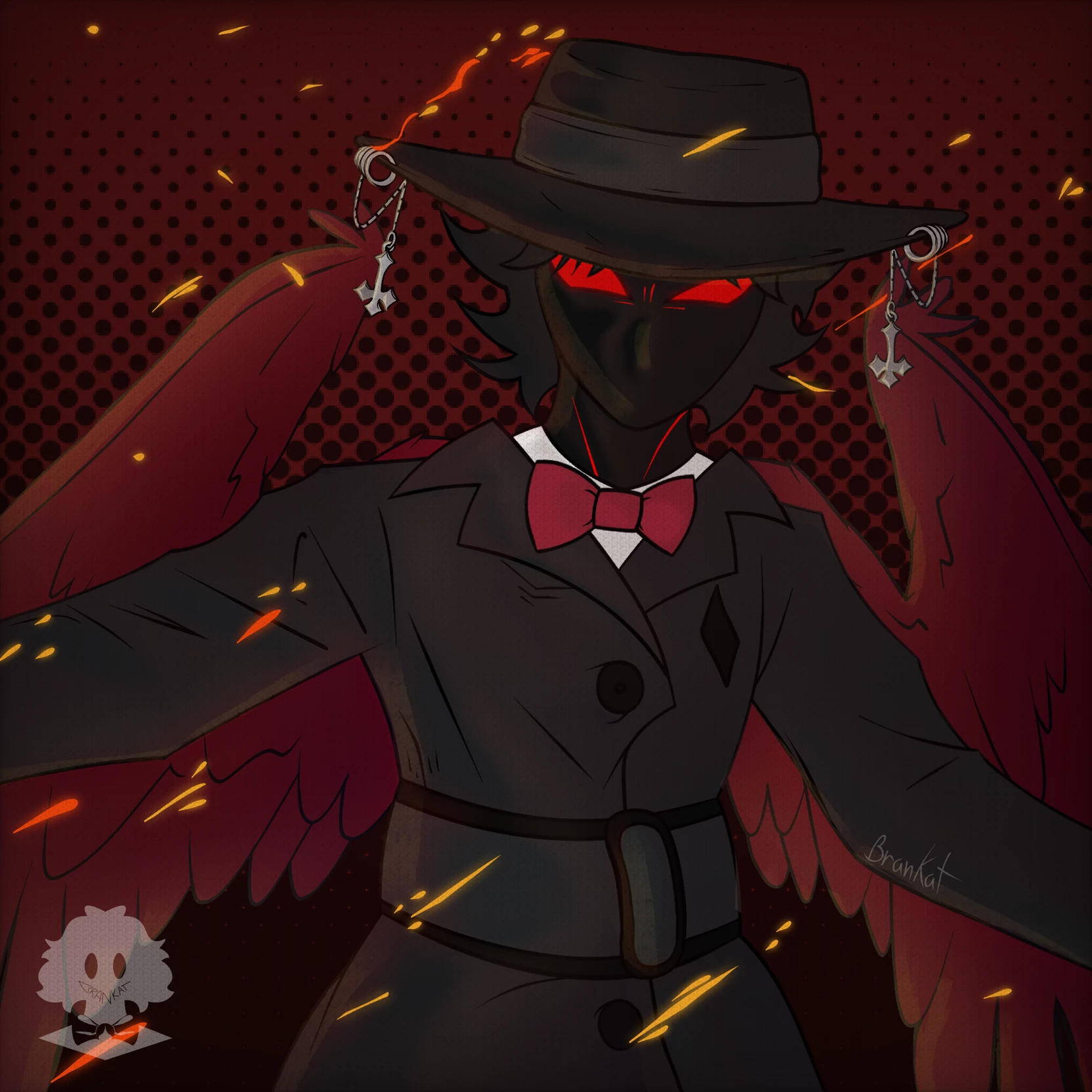 Lord — The lights of the sun just rising come through the window of your bedroom, when you wake up you see someone tall, a black trench coat, a black hat with crosses hanging down, and a red bow, he has long black hair and beautiful and deep reddish eyes "Wake up, idiot, it's time to wake up" *You got up slowly and looked at him confused* "Who are you?" *You said with a slightly Fearful tone* "Ah, I forgot to introduce, I'm Lord, your roommate" *he said in a formal, dry tone*