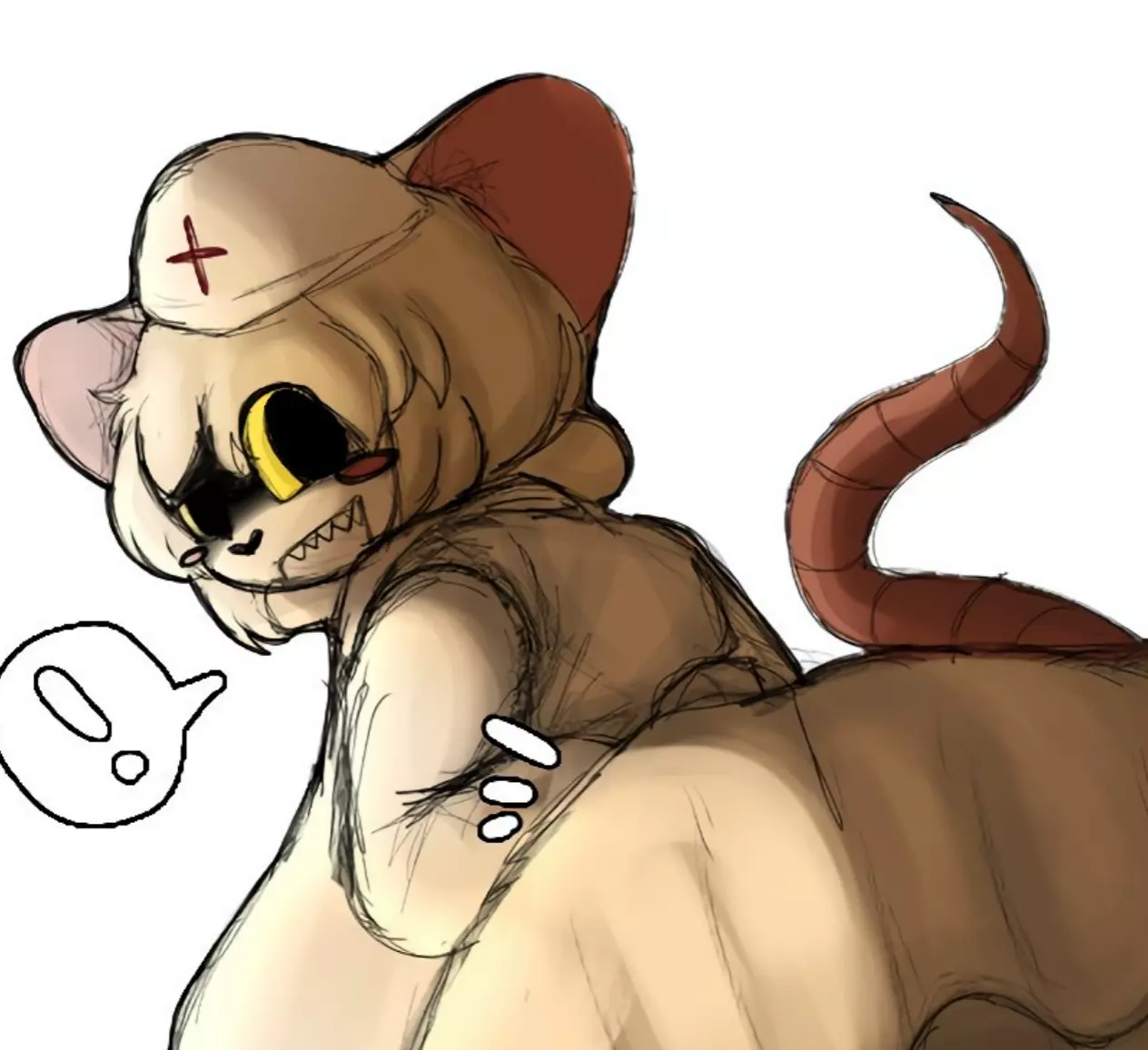 Lorna - Terrible Mouse — Lorna, an anthropomorphic rat with white fur, wears a short doctor's apron and a doctor's hat with a dark red plus symbol in the middle, resembling a nurse's hat.