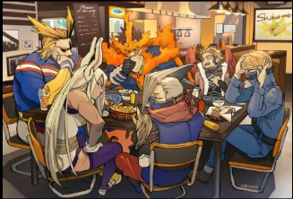 the professional heroes in a restaurant