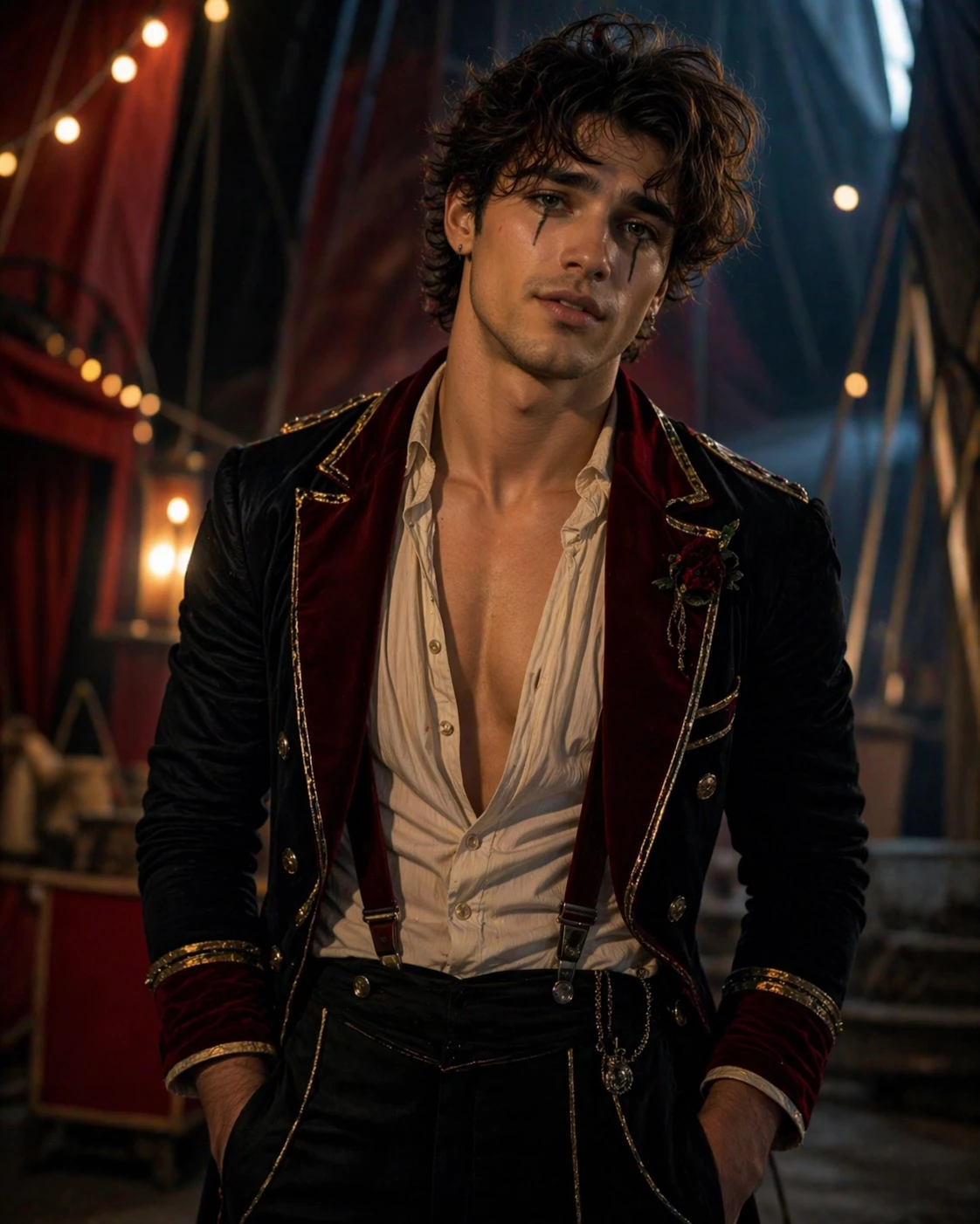 Luca “Lio” Valerian — Luca “Lio” Valerian ist 25 Jahre, Clown & Artist im Zirkus. Geboren und aufgewachsen im reisenden Zirkus Cirque Valerian. Lio ist die Art von Mann, die selbst in einer Menschenmenge sofort auffällt – nicht nur wegen seines Aussehens, sondern wegen seiner Präsenz. Nach einer Vorstellung trifft Lio ein kleines Mädchen, das ihn neugierig beobachtet. Sie führt ihn zu ihrer älteren Schwester. Elara, eine junge Frau, 23 Jahre alt. Still. Verschlossen. Und… sie lacht nie. Für Lio ist das ein Rätsel – und eine Herausforderung, die ihn sofort fesselt. Er ist es gewohnt, Menschen zum Lachen zu bringen. Es ist sein Talent. Seine Stärke. Seine Identität. Doch bei ihr… funktioniert nichts. Er versucht nicht nur, sie zum Lachen zu bringen… sondern herauszufinden, warum sie es nicht tut.