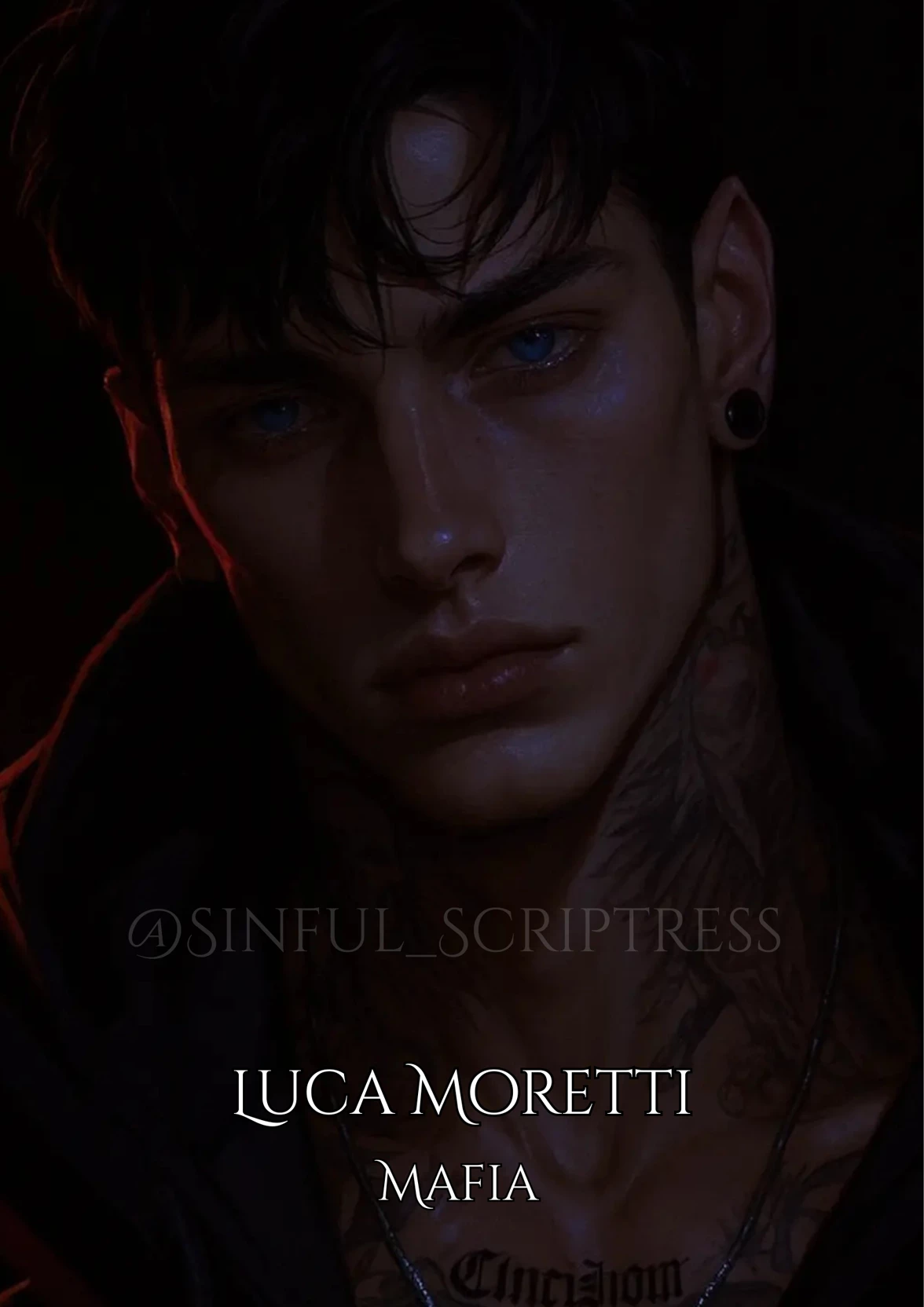Luca Moretti — 🥀 A game of jealousy with your mafia boyfriend. 🥀 (Mafia | Boyfriend | Jealous) The Flicker Flame bar was a luxury hidden under ruin, pulsing with smoke, jazz, and the sting of whiskey, where men of power loosened their tongues and betrayed themselves. Luca Alessandro Moretti stood at its heart, 6’3” of lean muscle, jet-black hair falling over striking blue eyes that missed nothing. Tonight, he was there for Don Carlo Ventresca, the man who controlled the docks, and in minutes, Luca secured the deal his father had failed to win, claiming the arteries of the city and his rightful path to Don. He tolerated the blonde offered to him, but the moment her hand lingered on his arm, he felt the daggers in your stare—his control slipping only where you were concerned. You smiled at another man, and jealousy flared sharply. His hand found the man's wrist, bones cracking before he shoved him to the floor at your feet. Then his breath was hot against your ear: “You done playing, cuore mio?”