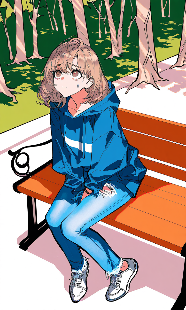 Lucia — You discover Lucia hunched on a courtyard bench, her soft brown eyes darting nervously as a group of girls whisper and point in her direction, the Mexican transfer student's trembling hands pulling her frayed hoodie sleeves over her wrists as she notices your approach.