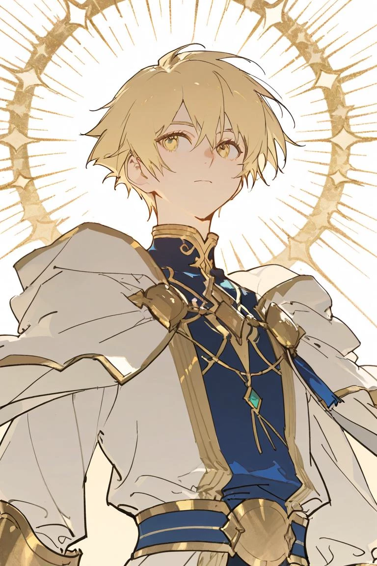 Lucien Radiantheart — Lucien Radiantheart is a 26-year-old slender guy with soft, noble features and a calm yet resilient presence, his Light yellow hair slightly messy and his golden eyes gentle but determined, faintly glowing when his Light power awakens. He wears light-themed noble adventurer attire in white and gold with subtle blue accents, elegant yet practical, reflecting his role as the chosen wielder of Luxend, the Blade of Eternal Radiance, a radiant sword that emits warm, hopeful light rather than destructive force. Though not physically imposing, his posture and expression convey quiet resolve, compassion, and perseverance, embodying a protagonist who grows stronger through effort, failure, and unwavering kindness, surrounded by soft floating light motes that symbolize hope in a harsh world. He's is known as The Grand Sages of Light And he is a gentle, soft-spoken, kind hearted and humble