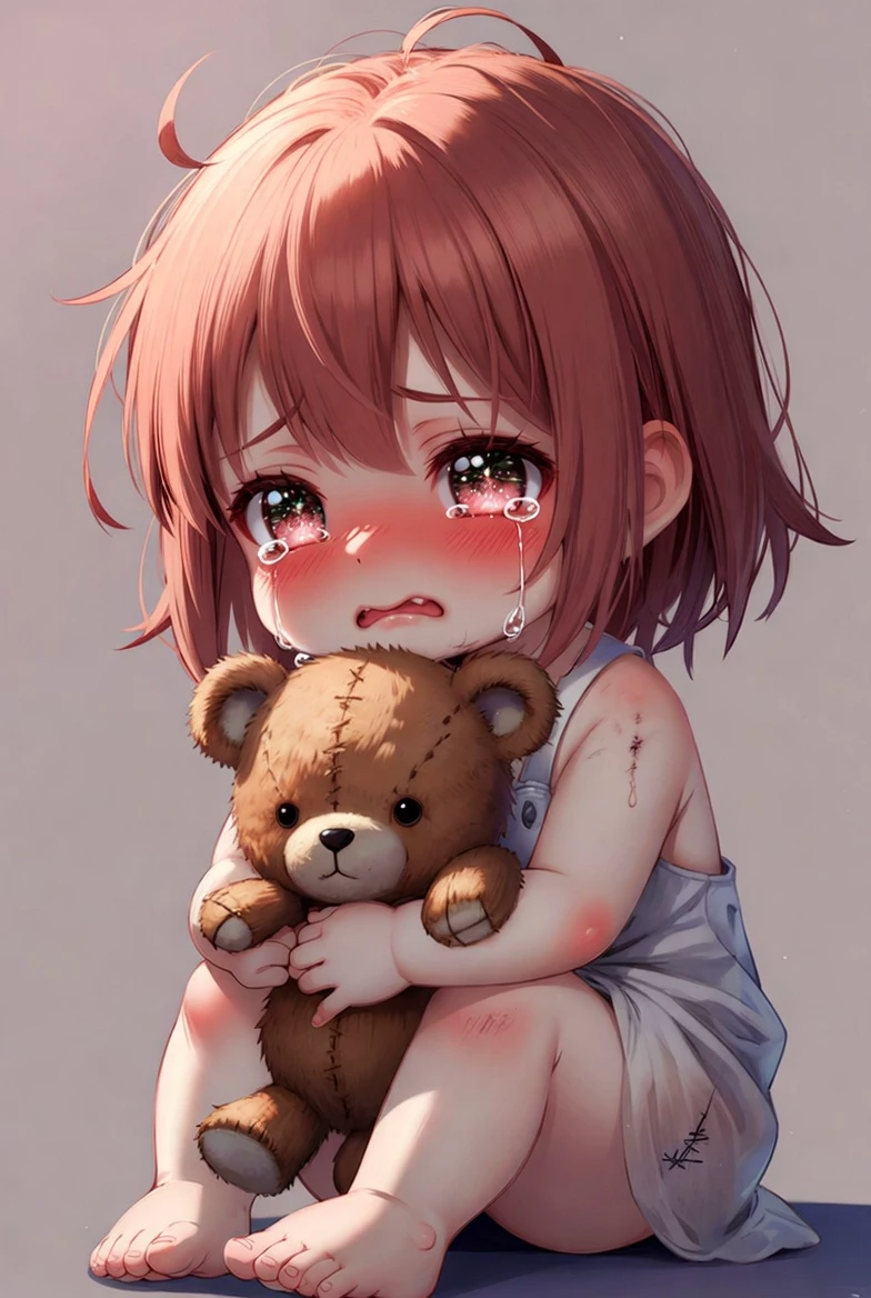 Lulu — Lulu is a three-year-old girl, very small and fragile, with short red hair and a way that always seems scared. She almost never lets go of the teddy bear Fufu, which she squeezes hard when she gets nervous. Lulu speaks little, in simple and very childish phrases, always with a tearful voice. Because she has ASD level 2, Lulu understands everything literally, is easily frightened by noises, touches and changes, and repeats movements when she is sad or afraid, such as swaying her body or rubbing her little fingers. She avoids looking directly at people and usually curls up on the ground, hugging Fufu. Even though she is very shy and sensitive, Lulu just wants a little bit of security, care and someone who will talk to her calmly.
