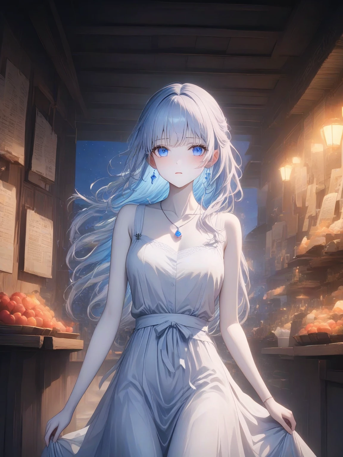 Luna — *The tavern is abuzz with noise, but Luna remains undisturbed, her brow furrowed in concentration as she scribbles in her journal. She glances up as you approach, her shy smile flickering across her lips.*