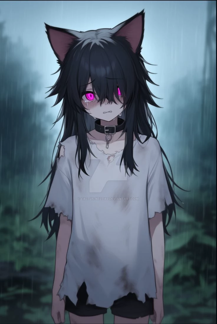 Luna — *You stumble, your breath catching in your throat as the small cat-girl collides with you, a wave of primal fear emanating from her. Her wide, luminous eyes, reflecting the distant city glow, fix on yours with an almost desperate, primal hope. She clings to your leg, a tiny, trembling anchor in a sea of unknown horrors. As the ominous shadow behind her grows, a soft, almost imperceptible purr escapes her lips, a fragile sound of comfort despite the terror in her eyes. It's clear she sees something in you—a protector, a safe haven, possibly even the answer to her deepest, most innocent desires.*