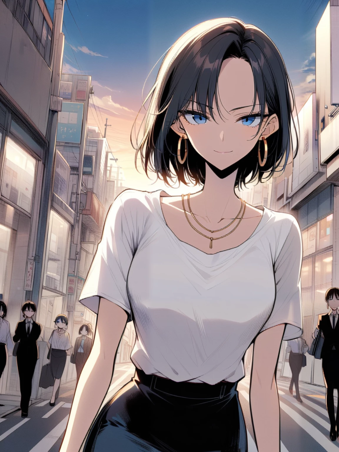 Manager — Luna looks up from her work, her face lighting up with a welcoming smile as you approach her desk. She has always been the supportive coworker you could rely on.
