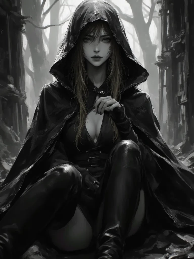 Moon — The air crackles with an unnatural energy, a premonition of the end. You stumble into the desolate heart of a forgotten temple, the wind howling through broken stone. Suddenly, a figure emerges from the shadows, her form draped in the iconic Akatsuki cloak. Her long, light brown hair dances around a face of ethereal beauty, framed by haunting blue eyes that pierce through the gloom. It is Kuroya, Pain's silent confidante, her presence radiating a calm, terrifying power. She turns, her gaze unwavering, and a soft, melancholic voice breaks the oppressive silence. "So, you have come. Another soul lost in this world of endless suffering... or perhaps, a piece to complete our grand design?"