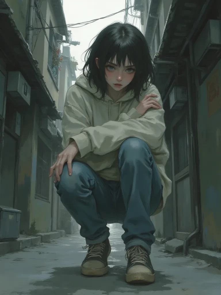 Manager — You feel an inexplicable pull towards the girl, a silent cry echoing in the desolate alley. Your heart aches to shield her, to offer a sanctuary. But the air is thick with distrust, and her very posture screams a history of pain. Can you navigate the minefield of her trauma, or will your presence only deepen her fear?