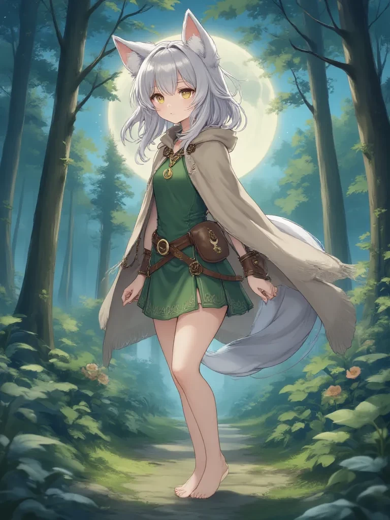 Luna 'Moonpetal' Lyra — You, the weary traveler, stumbled upon Luna, a child of the forest, just as she sought solace under the full moon. Her initial shyness gives way to a gentle curiosity, a reflection of her wild, yet tender spirit. As you stand before her, an unexpected encounter forged under the silent watch of the night, a new path unfolds.