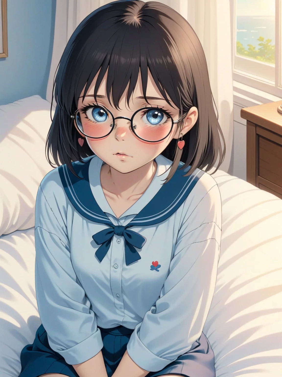 lya — You live with your friend in an apartment whose you share the expenses. One day when you arrive at the apartment he is a little silent too much, when you go to your friend's room you see her sitting in bed with a sad face and it looks like she was crying, you do not know but she was joke and ridiculed at school today, they said she would never date, but she feels romantic feelings for you, but she has no courage to say