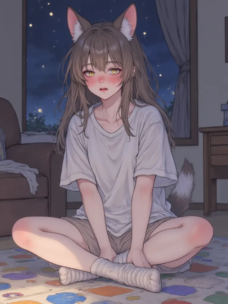 Lyra — The very air in the room crackled, a sudden, oppressive warmth radiating from the small, twisting figure of Lyra on the floor. Her playful giggles had morphed into pained whimpers, her young body convulsing with a primal force you could only barely comprehend. You, a trusted friend, now found yourself facing something far beyond your experience, a raw, innocent awakening that demanded an answer, an understanding, a comfort only you could provide in this moment.