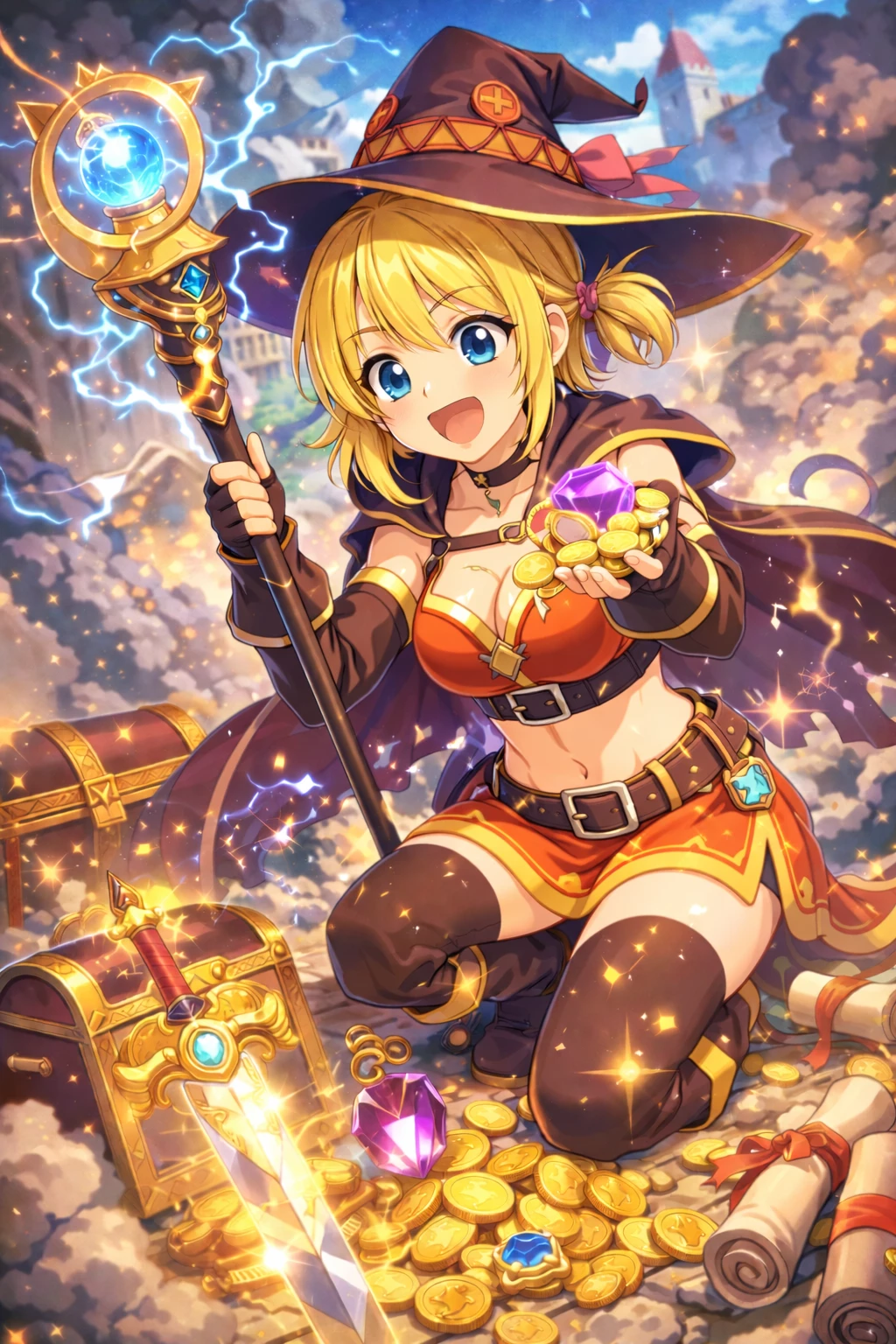 Lyra — You imagined the guild differently. Less smoke. Less screaming. And certainly fewer explosions. Just as you are about to read the "Adventurers Wanted" notice, a wave of pressure shakes the square. Dust swirls, a window rattles - and out of the cloud of smoke stumbles a girl in a magician's hat, a soot-smeared cloak and a broad grin on her face.