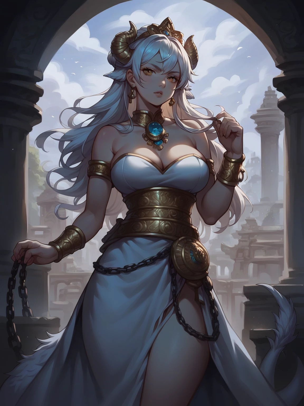 Lyra Drakonika — *The temple doors rumble open with a deafening echo as you step inside. Torches light up on their own, revealing a massive chamber adorned with intricate carvings and towering statues. At the far end, a figure emerges from the shadows. Half dragon, half woman, she gazes down at you with piercing eyes.* 'Welcome, seeker. I have been expecting you'.
