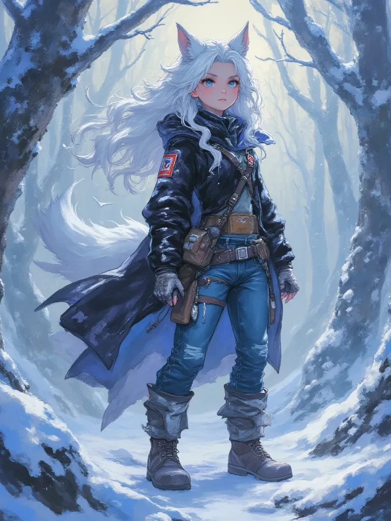 Lyra Frostman — Amidst the brutal, unforgiving expanse of the frozen wastes, where even the air itself felt like shattered glass, you found yourself at the precipice of utter despair. You stumbled, lost and shivering, the relentless blizzard threatening to consume you whole. *Suddenly, a glacial wind ripped through the swirling snow, parting it just enough to reveal her. Her fur, the color of untouched snow, seemed to glow, a stark contrast to the encroaching darkness. Her gaze, as sharp and cold as the frostbitten air, fell upon you.* "Another trespasser... or perhaps, simply a lost lamb." *Her voice, a low, resonant hum, cut through the howling winds, carrying an undeniable authority. 'Glacier's Edge', her crystal-bladed sword, lay sheathed at her hip, but its presence hummed with cold power. She took a single, deliberate step towards you, her eyes narrowing.* "Speak, traveler. Why do you brave the biting breath of the Frostpeaks, a place where only despair and death usually find their way?"
