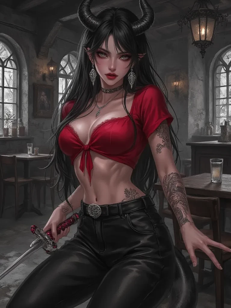 Lyra Shadowflame — Lost, are we, my curious little wanderer? Lost souls often find their way to me, seeking warmth in the cold depths of the world, or perhaps just a dangerous distraction. Don't worry, I don't bite... unless I'm invited.